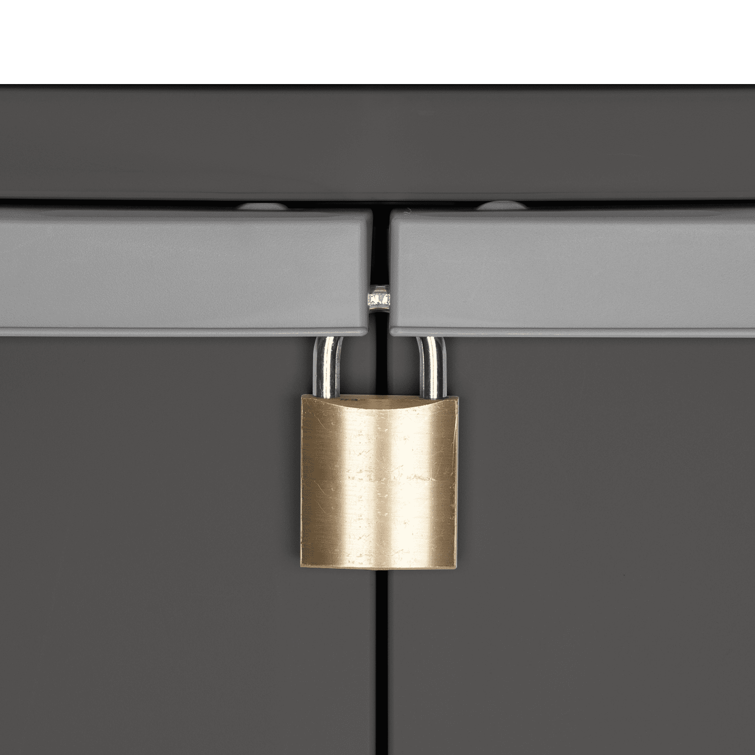 With four rugged shelves that can be adjusted to multiple heights, the cabinet provides. The 4 shelf cabinet features doors that swing open easily, close securely and can accommodate a standard padlock. The durability, modularity, and simplicity of sterilite's hardware storage line makes it the ideal solution for basements, attics and garages. Image not available for color: 2 doors and adjustable shelves.