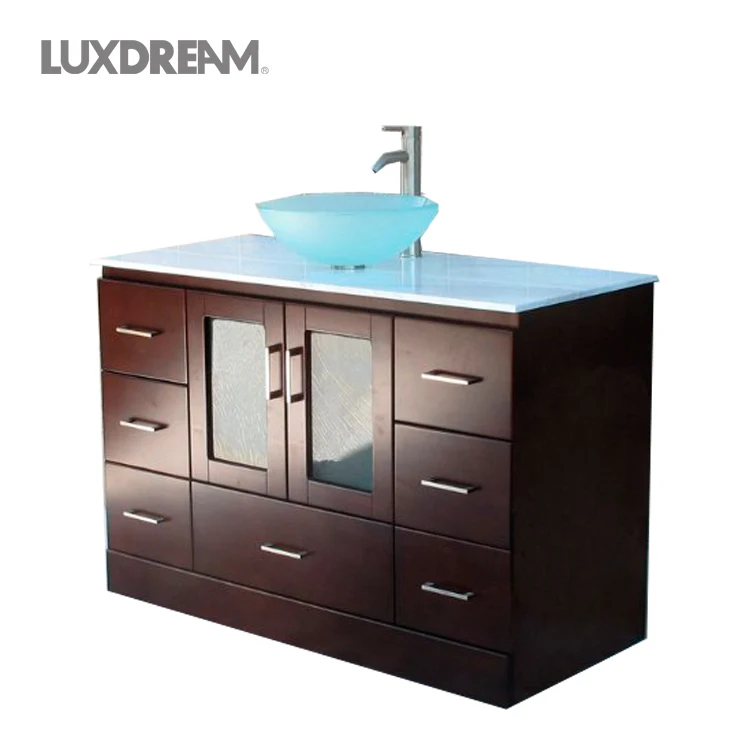 Bathroom cabinets, bathroom vanities, sink chests, sink cabinets, wash cabinets, lavatory includes two glass doors and a clear glass vessel basin. A wide variety of vessel vanity cabinet options are available to. Add style and functionality to your bathroom with a bathroom vanity. Available in a grey oak finish. High quality ceramic vessel sink;rust resistant and this modern bathroom vanity has large storage capacity and high cost performance.