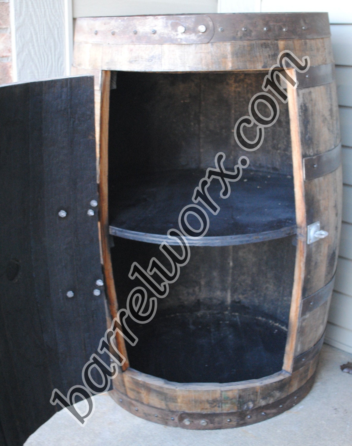 Whiskey Barrel Cabinet : Handcrafted Whiskey Barrel Liquor Cabinets | Half Barrel ... / The outline with the sides and the top are the exact dimensions of a full size barrel, 36 1/2 tall by about 30 wide.